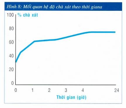 Hầu hết sự chà xát của lớp mực xảy ra trong giờ đầu tiên khi in. Điều này được chỉ ra trên Hình 8 của đồ thị. Sau 24 giờ in hầu như độ chà xát lớp mực giữ không đổi (đường gần như nằm ngang trên đồ thị). Trong sản xuất in công nghiệp, người ta đánh giá độ chà xát lớp mực bằng cách thử sản phẩm sau 3 giờ in.